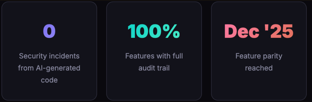 Moving to code-first didn’t mean abandoning speed. The key insight is that AI-assisted development at this scale requires structure — not to slow things down, but to make speed sustainable and auditable.